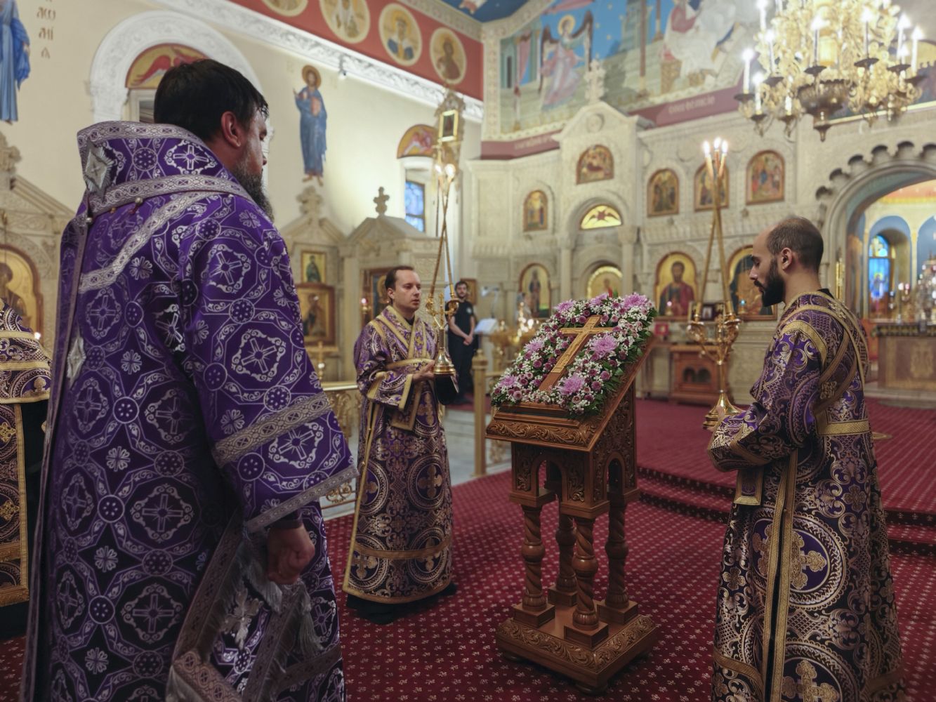 В канун праздника Воздвижения Честного и Животворящего Креста Господня епископ Бакинский и Азербайджанский Алексий совершил всенощное бдение в кафедральном соборе святых Жен-Мироносиц г. Баку. Архиерею сослужило соборное духовенство. За всенощным бдением был совершен Чин Воздвижения Честного и Животворящего Креста Господня.