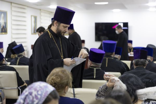 Епископ Алексий выступил перед собравшимися с докладом о жизни Бакинской епархии за 2025 год. На заседании были избраны члены Епархиального совета и Епархиального суда, всесторонне обсуждены вопросы епархиальной жизни, заслушаны доклады руководителей епархиальных отделов, принят ряд решений по оптимизации работы отделов, комиссий и приходских структур.