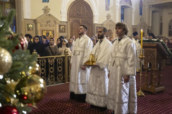 В Рождественский сочельник епископ Бакинский и Азербайджанский Алексий совершил Божественную литургию в кафедральном соборе святых Жен-Мироносиц г. Баку. Архиерею сослужило соборное духовенство.
