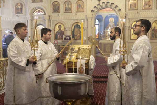 В Крещенский сочельник епископ Бакинский и Азербайджанский Алексий совершил Божественную литургию, великую вечерню и чин великого освящения воды в кафедральном соборе святых Жен-Мироносиц г. Баку. Архиерею сослужило соборное духовенство.