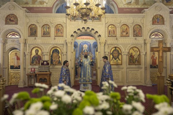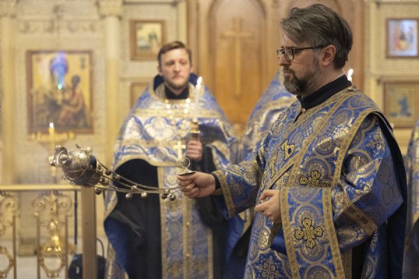 Епископ Алексий совершил утреню с чтением акафиста Божией Матери