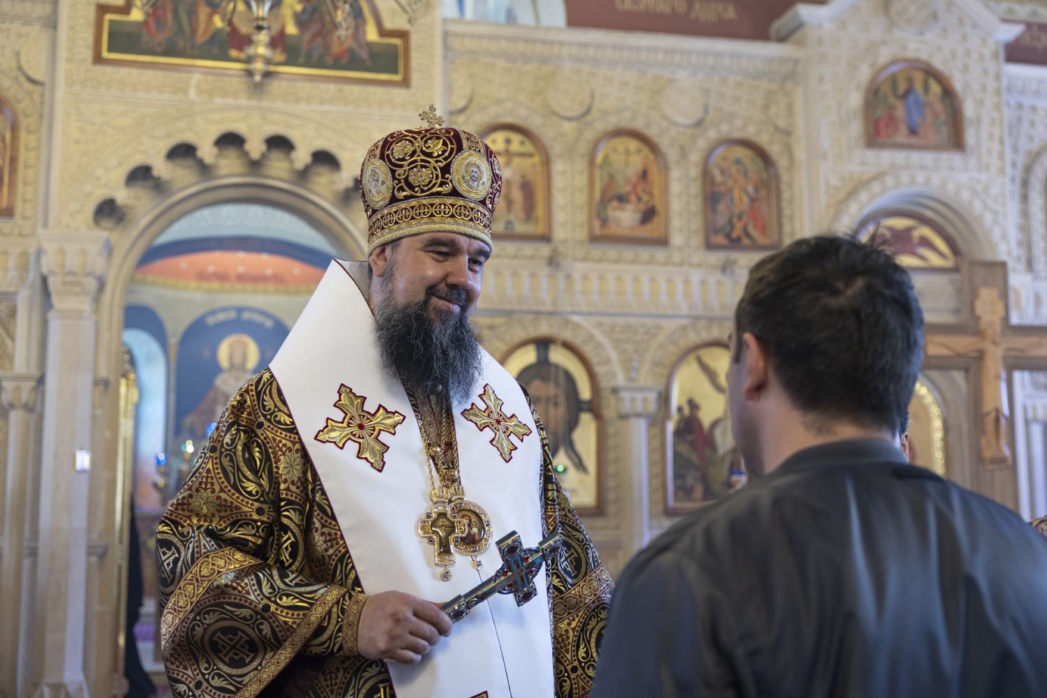 По окончании богослужения от имени духовенства и мирян епископа Алексия поздравил с тезоименитством секретарь епархии и настоятель кафедрального собора святых Жен-Мироносиц г. Баку протоиерей Дионисий Свечников. Архипастыря также поздравили прихожане кафедрального собора и других бакинских храмов, молодежь и активисты епархиального паломнического движения.