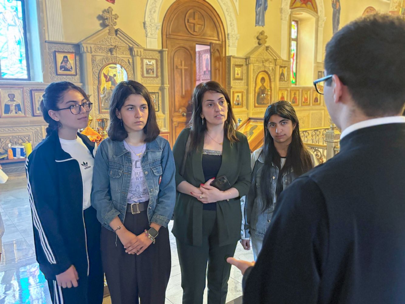 Учащиеся средней школы им. Бахруза Гашимова села Боят Нефтчалинского района в сопровождении преподавателя посетили кафедральный собор святых Жен-Мироносиц г. Баку. Визит школьников был организован в рамках приобщения к мультикультурным ценностям и традициям азербайджанского общества и ознакомления с религиозным многообразием нашей страны. Экскурсию по храму для детей провел активист епархиального молодежного движения Нектарий Гасанов.