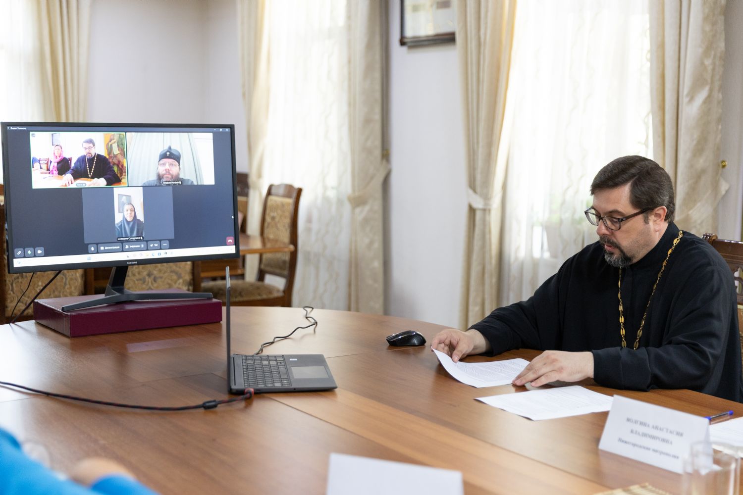В заключении информационного тура, проведенного Бакинской епархией для руководителей паломнических служб России и Беларуси, в Православном религиозно-культурном центре епархии состоялся круглый стол «Развитие православного паломничества в Азербайджане». По видеосвязи к круглому столу присоединились председатель Комиссии Русской Православной Церкви по развитию паломничества и принесению святынь митрополит Псковский и Порховский Матфей и член Комиссии игумения Михаила (Солодухина).