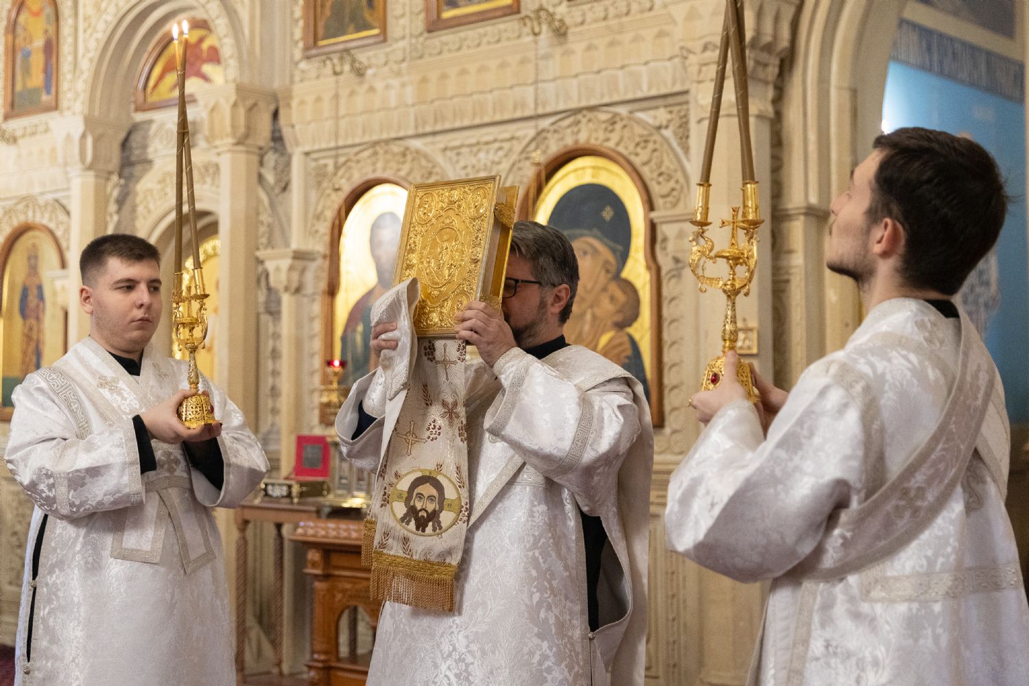 В канун праздника Архистратига Михаила и всех небесных сил бесплотных епископ Бакинский и Азербайджанский Алексий совершил всенощное бдение в кафедральном соборе святых Жен-Мироносиц г. Баку. Архиерею сослужили секретарь Бакинской епархии протоиерей Дионисий Свечников, благочинный Светлоградского благочиния Ставропольской епархии протоиерей Иоанн Лещина, настоятель храма Казанской иконы Божией Матери с. Донская Балка иерей Роман Лещина, духовенство кафедрального собора.