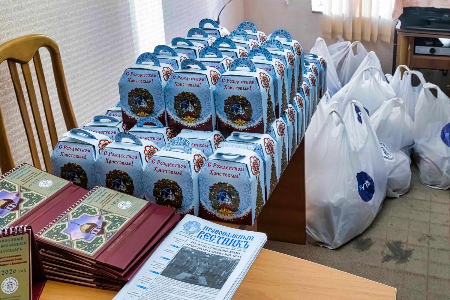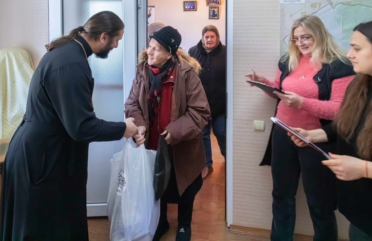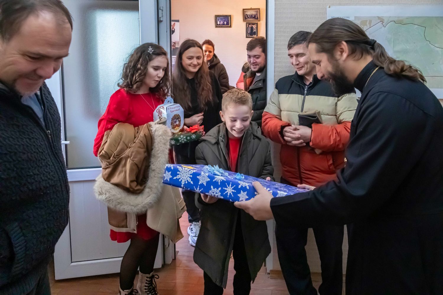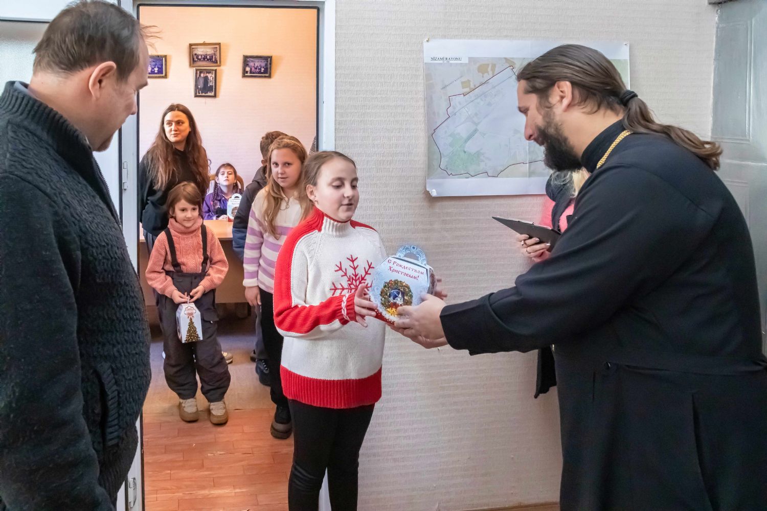 В преддверии праздника Рождества Христова руководитель епархиального Отдела по благотворительности и социальному служению протоиерей Мефодий Эфендиев встретился с членами малообеспеченных семей в Низаминском отделении Русской общины г. Баку. В рамках встречи, при поддержке банка «ВТБ – Азербайджан», была проведена благотворительная акция, во время которой пришедшим были розданы продуктовые наборы и специально приготовленные для детей Рождественские сладкие подарки. Также во время мероприятия был проведён заключительный этап благотворительной акции «Письмо Деду Морозу», в рамках которого детям семей ветеранов Ι и ΙΙ Карабахских войн были переданы подарки, о которых дети просили в своих письмах. Во встрече приняли участие председатель Русской общины Низаминского района г. Баку Виталий Ковалёв, дочь Национального Героя Азербайджана Юрия Ковалёва Регина Ковалёва, Герой 44-дневной Отечественной войны Денис Гузлаев и помощник председателя Низаминского отделения Русской общины г. Баку Элана Мамедова.