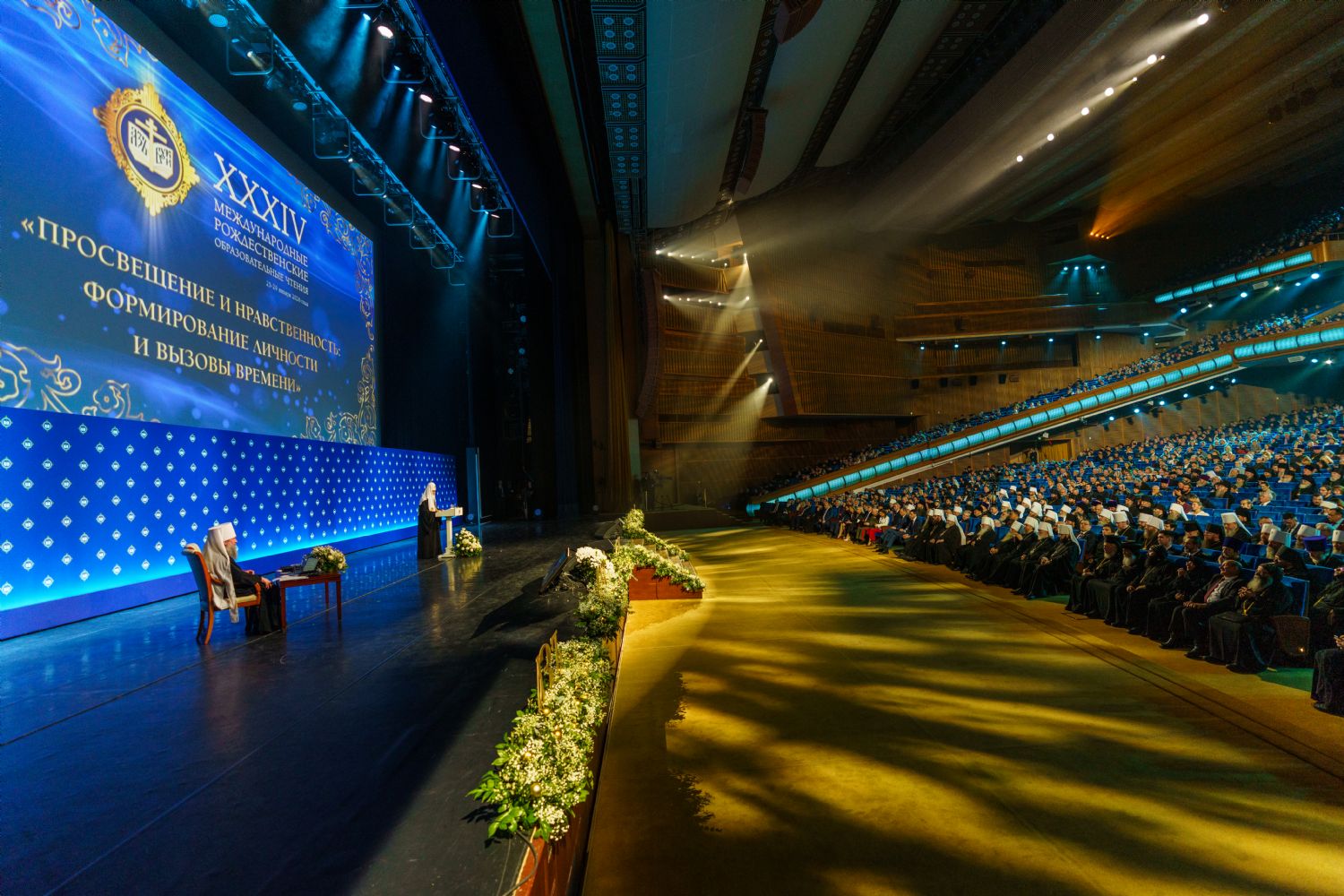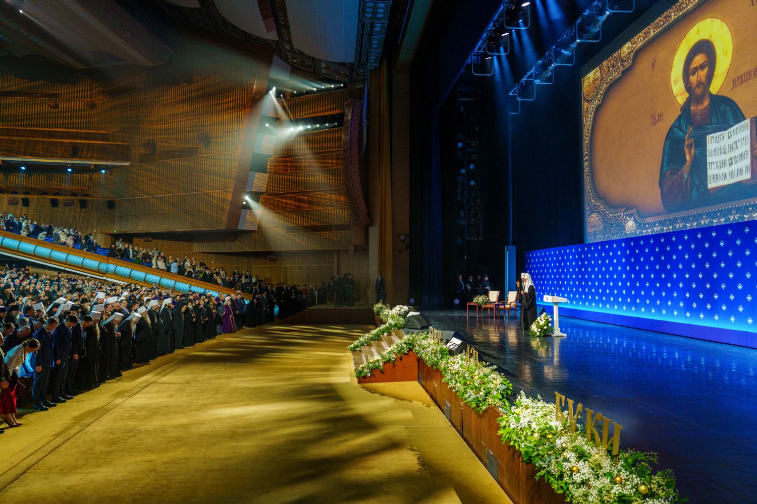 В Государственном Кремлевском дворце в Москве под председательством Святейшего Патриарха Московского и всея Руси Кирилла состоялось торжественное пленарное заседание XXXIV Международных Рождественских образовательных чтений «Просвещение и нравственность: формирование личности и вызовы времени». В зале Государственного Кремлевского дворца собралось свыше 5 тысяч человек: члены Священного Синода и Высшего Церковного Совета, главы экзархатов, митрополий и епархиальные архиереи Русской Православной Церкви, представители Поместных Православных Церквей, государственные деятели, руководители и педагоги высших и общеобразовательных учебных заведений, священнослужители, приходские специалисты, деятели науки и культуры. В пленарном заседании приняла участие делегация Бакинской епархии во главе с епископом Бакинским и Азербайджанским Алексием.