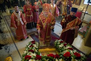 По окончании Литургии был совершен Крестный ход и возглашены уставные многолетия по случаю престольного храмового праздника.
