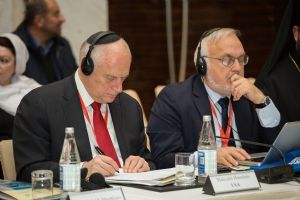 Константинопольского Патриарха Варфоломея. Митрополит Новгородский и Старорусский Лев огласил приветствие Святейшего Патриарха Московского и всея Руси Кирилла. Послание Католикоса-Патриарха всея Грузии Илии II огласил митрополит Ахалцихский и Тао-Кларджетский Теодор. От лица Папы Римского Франциска к участникам обратился представитель Папского совета по межрелигиозному диалогу монсеньор Халед Акаше. Первое пленарное заседание форума завершилось словом председателя Управления мусульман Кавказа Шейха-уль-Ислама Аллахшукюра Пашазаде.